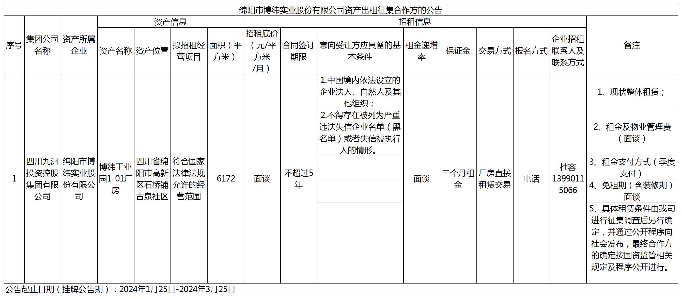 綿陽(yáng)市博緯實(shí)業(yè)股份有限公司資產(chǎn)出租征集合作方的公告