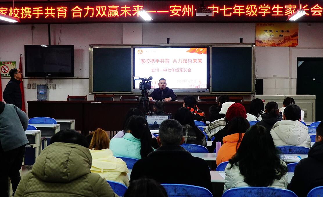 為了進(jìn)一步凝聚家校合作的力量,不斷提高家校合作的廣度和深度,使家長(zhǎng)全面了解學(xué)生在校學(xué)習(xí)與行為表現(xiàn),幫助家長(zhǎng)掌握科學(xué)的家庭教育方法,1月25日,安州區(qū)第一初級(jí)中學(xué)分年級(jí)組織召開(kāi)了以“家校攜手共育  合力雙贏未來(lái)”為主題的家長(zhǎng)會(huì)。該校領(lǐng)導(dǎo)、全體班主任、任課教師和家長(zhǎng)參會(huì),真誠(chéng)溝通,共話教育,助力成長(zhǎng)。