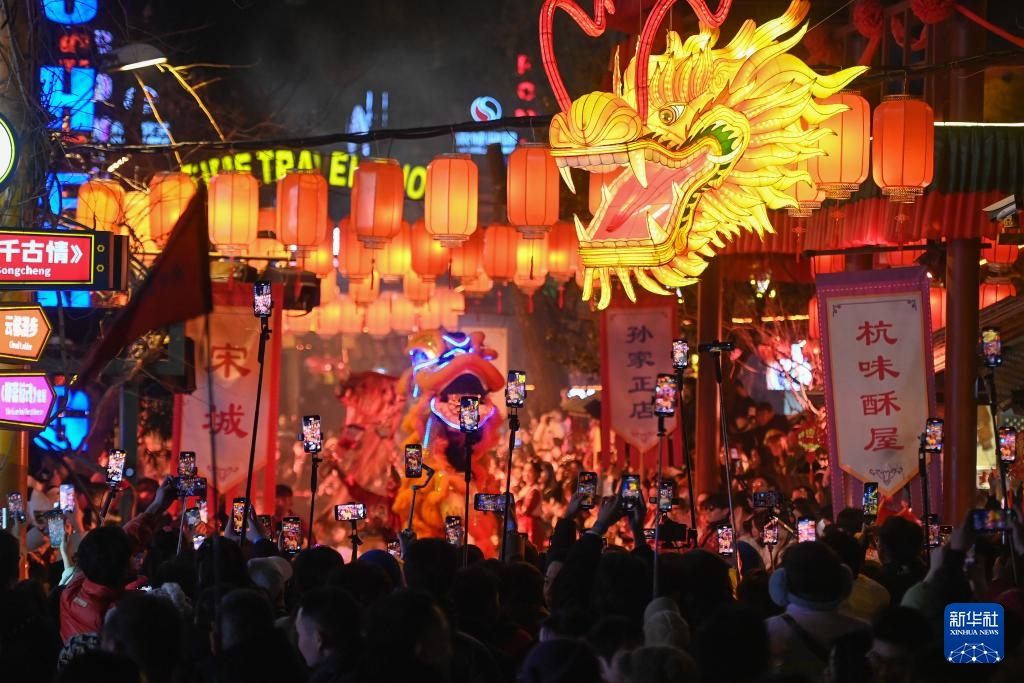 當(dāng)日,浙江杭州宋城景區(qū)新春主題活動(dòng)“狂歡中國年”啟幕,游園會(huì)、舞龍醒獅、打鐵花等演出活動(dòng)亮相,為游客營造濃郁的中國年氛圍。