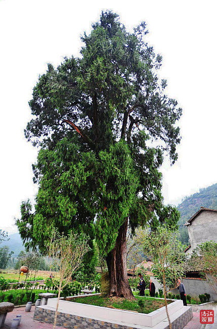 后經(jīng)林業(yè)專家考證,鄉(xiāng)親們口中的這株“龍柏”,并非真正的龍柏樹。真正的龍柏是柏科圓柏屬的常綠喬木植物,也叫檜、檜柏,高可達20米,樹冠圓錐形,因枝條長大后會呈螺旋狀伸展,向上盤曲,好像盤龍姿態(tài),故又名龍柏。而河石村這株古柏雖也為柏、常綠喬木,但為普通柏樹,學(xué)名柏木,亦稱垂柏。2019年12月,這株古柏被列為江油市政府掛牌保護的古樹名木,樹齡超過520年,為一級保護古樹。