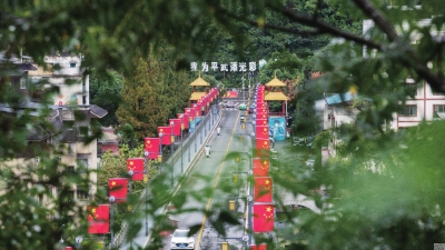 隨著國慶到來,一抹抹耀眼的“中國紅”成為平武街頭最美的色彩。 (記者 任露瀟 攝)