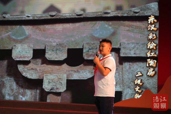 活動(dòng)中,小小講解員成為當(dāng)晚最大的亮點(diǎn)。他們站在大屏幕前,用稚嫩但自信的聲音,將10余件文物的背后故事娓娓道來,從元代的青花瓷到明代的蟾銅熏爐,從唐朝的葡萄紋銅鏡到東漢的紅陶舞俑、馬猴搖錢樹,每一件文物都蘊(yùn)含著深厚的文化底蘊(yùn)。