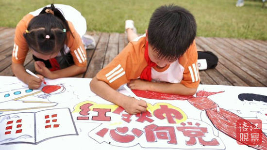 當(dāng)?shù)孛袼捱€組織小朋友們制作了一把長(zhǎng)達(dá)10米的漆扇。在漆扇畫卷上,從壯麗的山河到現(xiàn)代的科技,孩子們用五彩斑斕的畫筆描繪出對(duì)祖國(guó)的美好祝愿。