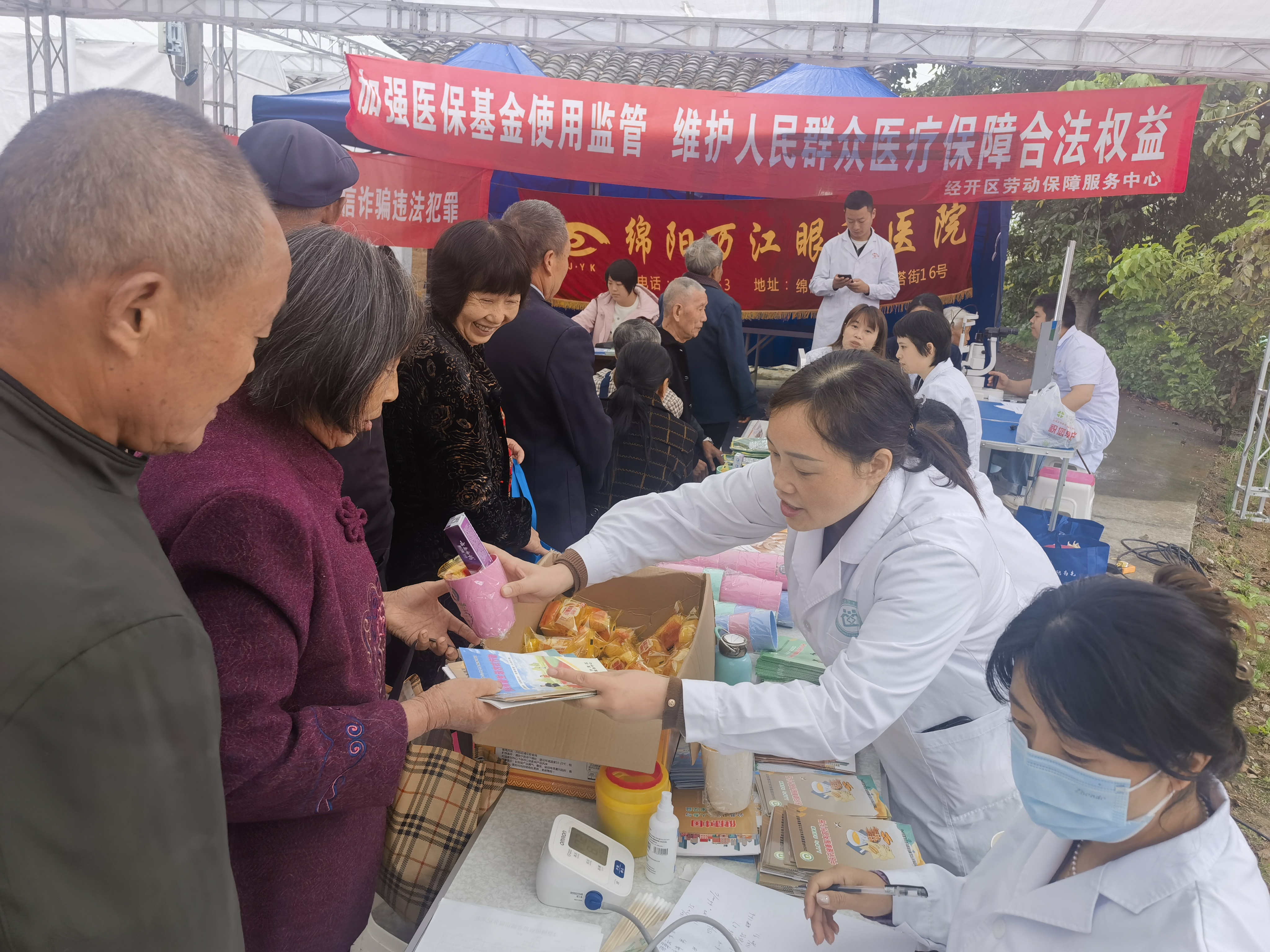 活動(dòng)現(xiàn)場(chǎng),中心義診醫(yī)療專家為前來(lái)就診的居民提供基礎(chǔ)性檢查如測(cè)血壓、測(cè)血糖、開展健康咨詢及指導(dǎo)、開展中醫(yī)體質(zhì)辨識(shí)等。同時(shí),綿陽(yáng)第三人民醫(yī)院及萬(wàn)江眼科醫(yī)院專家團(tuán)隊(duì)提供骨密度篩查、眼底檢查等特殊項(xiàng)目檢查,并現(xiàn)場(chǎng)提供眼病咨詢服務(wù)。醫(yī)務(wù)人員重點(diǎn)針對(duì)慢性病、骨健康等進(jìn)行了詳細(xì)的健康知識(shí)宣講,認(rèn)真仔細(xì)地詢問每一位老人的病史及身體狀況,耐心解答居民提出的疑問,并針對(duì)不同病癥、個(gè)體差異給出個(gè)性化治療方案。為強(qiáng)化老年群眾的健康認(rèn)識(shí),現(xiàn)場(chǎng)為480位老人發(fā)放健康紀(jì)念品,發(fā)放健康科普宣傳資料2400冊(cè),引導(dǎo)大家樹立正確健康的生活方式。