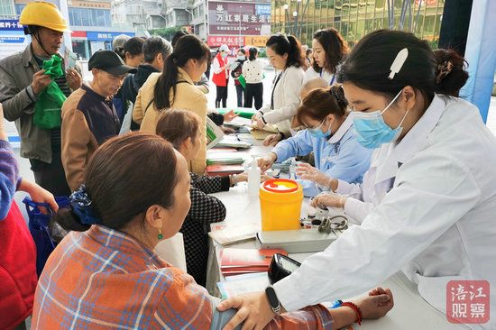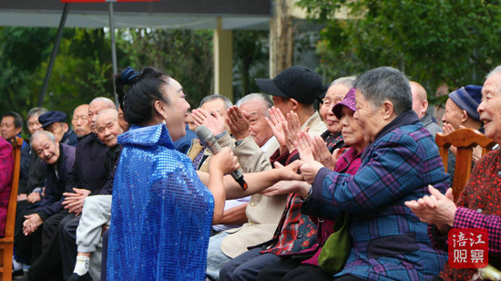 活動(dòng)現(xiàn)場(chǎng)一派歡聲笑語(yǔ),歌舞、雜技、川劇……舞臺(tái)上,一個(gè)個(gè)老百姓喜聞樂見的節(jié)目輪番上演;一邊的健康體檢區(qū),免費(fèi)為老年人測(cè)量血壓、健康問診。