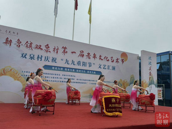 村民張曉紅說(shuō):“今天重陽(yáng)節(jié),我們?yōu)榇迳系睦夏昱笥褞?lái)了文藝節(jié)目,感覺大家都非常開心。”
