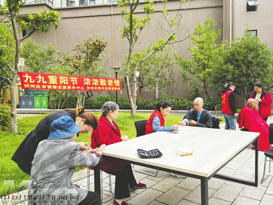 10月10日,安州區(qū)志愿者在轄區(qū)開展義診、義剪活動。 (記者 安崢 攝)