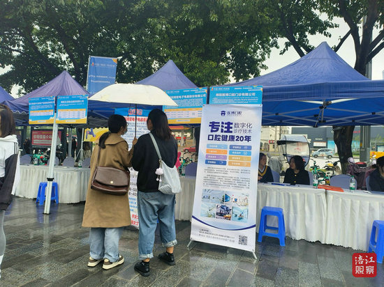 記者在現(xiàn)場看到,企業(yè)通過招聘展板、現(xiàn)場宣講以及面對面深入交流等方式,全方位地展示了企業(yè)的情況、崗位需求和福利待遇。