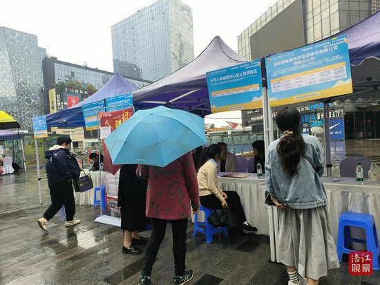 為更好地服務(wù)求職者和用人單位,活動現(xiàn)場,綿陽科技城社會事業(yè)局、黨群工作部、總工會、團(tuán)工委、婦聯(lián),以及國家稅務(wù)總局綿陽高新區(qū)稅務(wù)局、中國郵政儲蓄銀行股份有限公司綿陽市涪城區(qū)支行在現(xiàn)場設(shè)置政策咨詢區(qū),為求職者和用人單位提供就業(yè)創(chuàng)業(yè)、社保卡、工會幫扶、稅費(fèi)優(yōu)惠政策等一站式咨詢服務(wù)。(涪江觀察記者 唐甜 蔣成林 文/圖)