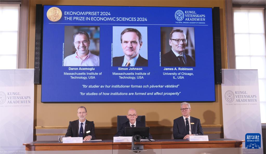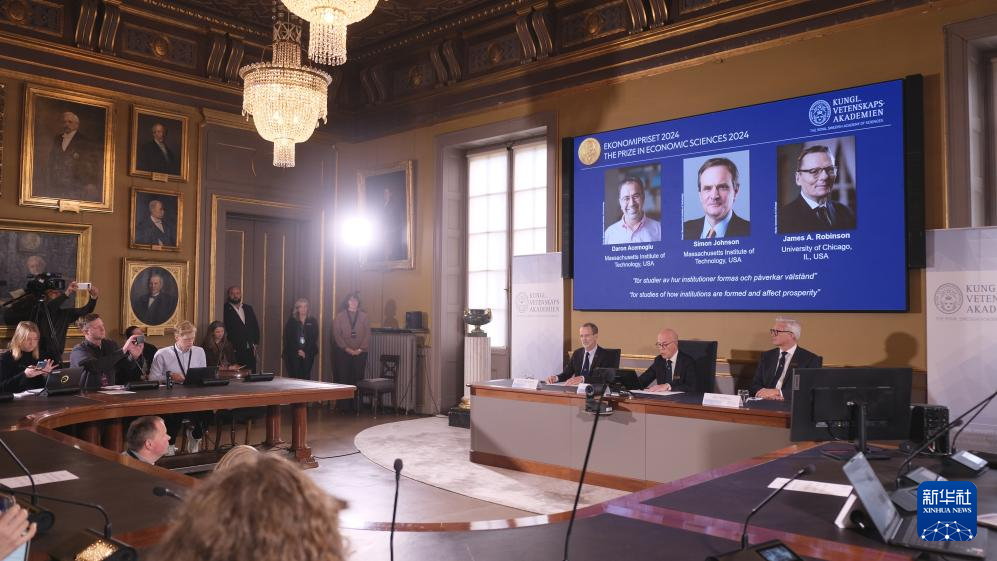 新華社斯德哥爾摩10月14日電(記者張玉亮 陳靜)瑞典皇家科學(xué)院14日在斯德哥爾摩宣布,將2024年諾貝爾經(jīng)濟學(xué)獎授予三位來自美國大學(xué)的經(jīng)濟學(xué)家達龍·阿杰姆奧盧、西蒙·約翰遜和詹姆斯·魯濱遜,以表彰他們在關(guān)于制度如何形成并影響經(jīng)濟繁榮研究領(lǐng)域的突出貢獻。