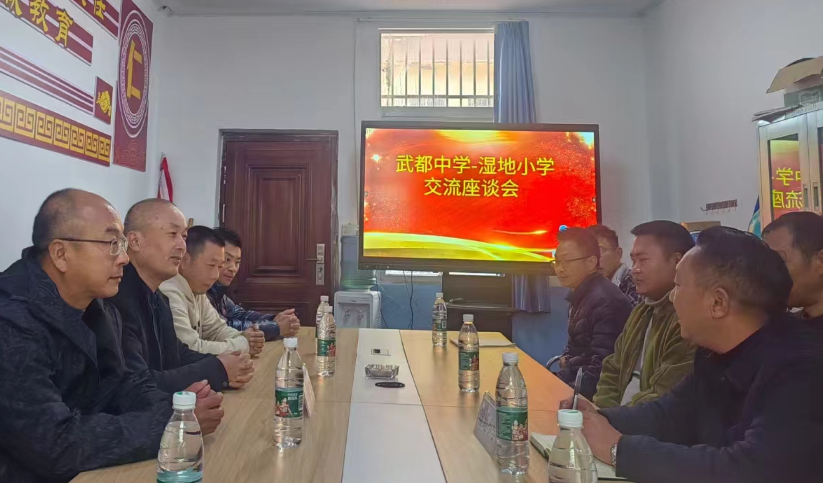 接著,兩所學校開展座談會。武都初中播放了學校開展航模科技活動的視頻,分享了經(jīng)驗;而后又分別向濕地小學領(lǐng)導班子詳細介紹了武都初中教學規(guī)劃和實施辦法、通過班團隊建設(shè)發(fā)揮學生自主管理的經(jīng)驗、學校工會管理和師德師風建設(shè)經(jīng)驗、如何有效結(jié)合地域文化開展德育教育等工作與管理經(jīng)驗。