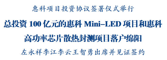 儀式上,副市長鄧輝介紹協(xié)議有關(guān)情況。涪城區(qū)與惠科股份有限公司簽署《惠科Mini-LED項目投資協(xié)議》《惠科高功率芯片散熱封測項目投資協(xié)議》。