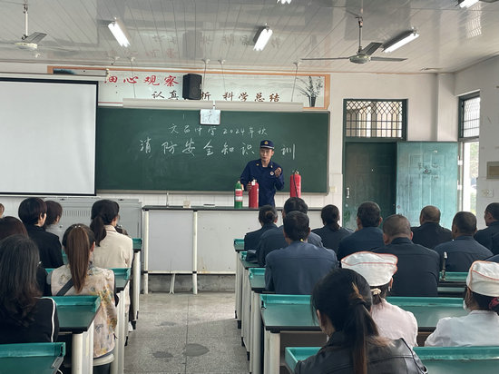 綿陽新聞網(wǎng)訊 為了切實(shí)貫徹落實(shí)消防安全工作,提高后勤、安保人員消防安全意識和自防自救技能,10月17日,梓潼縣文昌中學(xué)邀請梓潼縣消防中隊(duì)消防員班長楊勝,到校開展了以“消防安全進(jìn)校園,筑牢校園‘防火墻’”為主題的2024年秋“消防安全進(jìn)校園”培訓(xùn)活動(dòng)。