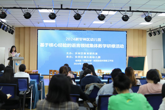 綿陽新聞網(wǎng)訊 為了進(jìn)一步加強(qiáng)安州區(qū)幼兒園對《3—6歲兒童學(xué)習(xí)與發(fā)展指南》和《學(xué)前兒童語言學(xué)習(xí)與發(fā)展核心經(jīng)驗(yàn)》的學(xué)習(xí)研究與實(shí)踐運(yùn)用,提升區(qū)內(nèi)幼兒教師的理論水平與教學(xué)實(shí)踐能力,提高語言教育質(zhì)量。10月17日,由安州區(qū)教育研究室主辦,調(diào)元路幼兒園、教育部“雙名計劃”高翔名園長陽春工作站承辦的“基于核心經(jīng)驗(yàn)的語言領(lǐng)域集體教學(xué)研修活動”在調(diào)元路幼兒園舉行。