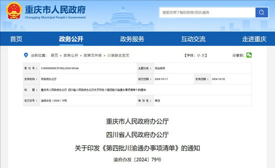 另?yè)?jù)四川省人民政府網(wǎng)站消息,省政務(wù)改革推進(jìn)辦發(fā)布關(guān)于印發(fā)《第四批川渝通辦事項(xiàng)清單》的通知解讀,解讀如下: