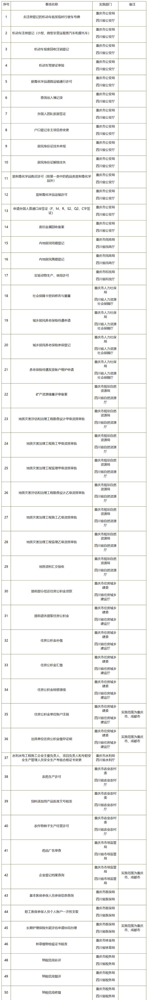 第四批川渝通辦事項(xiàng)清單