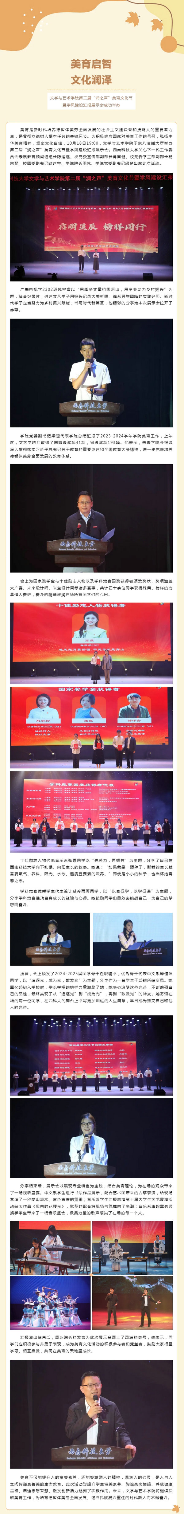 美育啟智 文化潤澤 | 文學(xué)與藝術(shù)學(xué)院第二屆“潤之聲”美育文化節(jié)暨學(xué)風(fēng)建設(shè)匯報展示會成功舉辦