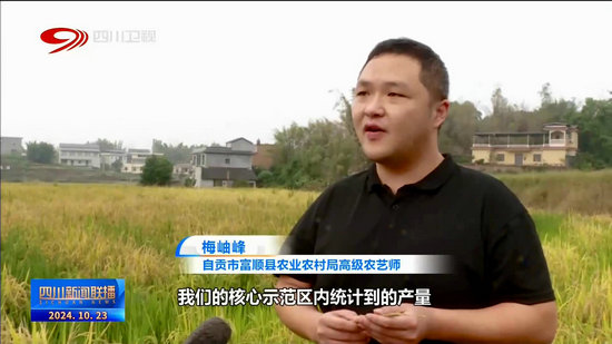 自貢市富順縣農(nóng)業(yè)農(nóng)村局高級農(nóng)藝師 梅岫峰:我們的核心示范區(qū)內(nèi)統(tǒng)計(jì)到的產(chǎn)量,(中稻畝產(chǎn))達(dá)到了667公斤,再生稻測產(chǎn)(畝產(chǎn))達(dá)到了403公斤,兩季畝產(chǎn)(量)突破了噸糧。