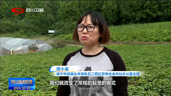 遂寧市安居永豐綠色五二四紅苕專業(yè)合作社辦公室主任 周小霞:我們就改變了常規(guī)的起壟的模式,我們現(xiàn)在用的是雙壟溝槽的模式,會比常規(guī)(方式種植的)商品薯增長25%——30%。