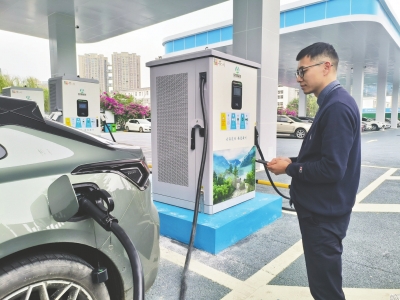 市民在安州區(qū)首個(gè)投用的超級(jí)充電站為車(chē)輛充電