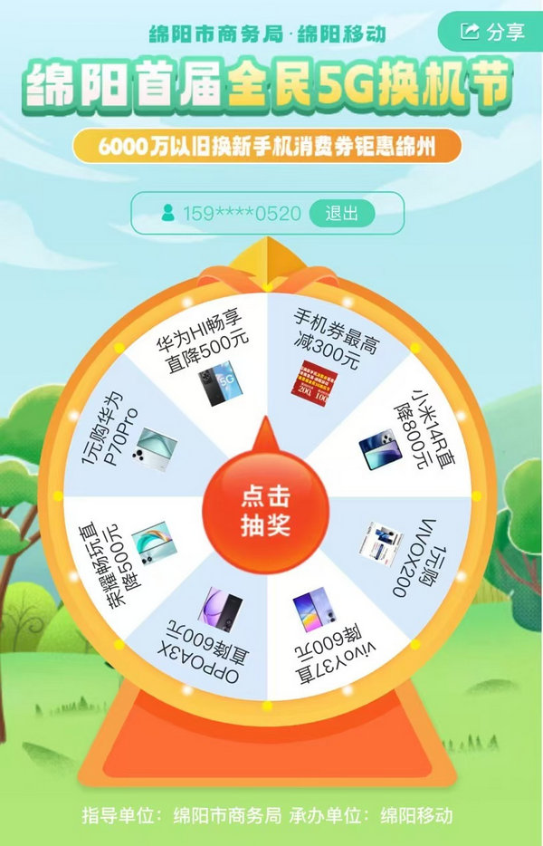 客戶通過綿陽移動營業(yè)廳現(xiàn)場辦理或掃本次活動二維碼參加消費(fèi)券抽獎,然后到指定移動營業(yè)廳參與活動即可。