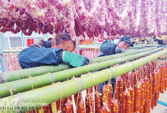 在現(xiàn)場(chǎng),幾個(gè)村民正忙著進(jìn)行豬肉烘干、腌制等流程。“我們都是附近村民,農(nóng)閑時(shí)便在這里幫忙加工臘肉,為家里添一份收入。”正在晾曬香腸的徐大娘說。據(jù)統(tǒng)計(jì),該生豬全產(chǎn)業(yè)鏈吸收周邊群眾就業(yè)20余人,帶動(dòng)80余群眾戶均增收0。8萬元。