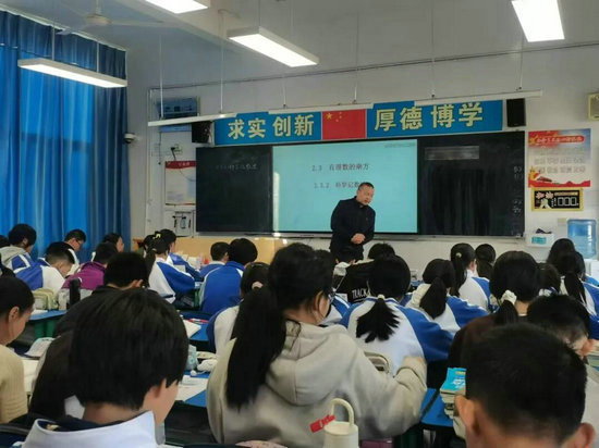 凌敏和何東華老師聽了兩位老師的數(shù)學(xué)課,第一節(jié)是數(shù)學(xué)組長(zhǎng)張建兵老師初一、一班的“有理數(shù)乘方”,張建兵在有理數(shù)的乘方教學(xué)中,給出學(xué)生需要理解乘方、冪、底數(shù)和指數(shù)的概念,并能正確進(jìn)行有理數(shù)的乘方運(yùn)算,他通過(guò)實(shí)例引導(dǎo)學(xué)生理解乘方的概念,并通過(guò)大量練習(xí)幫助學(xué)生掌握運(yùn)算方法?;第二節(jié)課是初一、二班新教師黃鈺瓊的“試卷評(píng)講”課,她從錯(cuò)誤率較高的題目入手,先展示錯(cuò)題,引出相關(guān)知識(shí)點(diǎn),對(duì)相關(guān)知識(shí)體系進(jìn)行復(fù)習(xí)整理并鞏固,然后學(xué)生分析失分原因并現(xiàn)場(chǎng)訂正錯(cuò)題,通過(guò)分析、講解說(shuō)出正確答案。黃老師用親切自然的教態(tài),專業(yè)扎實(shí)的基本功,呈現(xiàn)了一堂精彩紛呈的課例。兩位老師先肯定了老師們辛苦的付出所取得的成績(jī);也就教學(xué)中存在的問(wèn)題,作了坦誠(chéng)的交流并提出了希望:在今后的課堂教學(xué)中,做好反饋驗(yàn)收,做到分層教學(xué),分層推進(jìn),分層達(dá)標(biāo),讓所有的孩子學(xué)數(shù)學(xué),會(huì)學(xué)數(shù)學(xué),愛學(xué)數(shù)學(xué)。