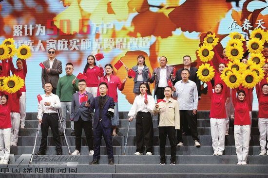 四川省第三屆殘疾人文化藝術節(jié)開幕式的舞臺上,燈光璀璨,氛圍熱烈,當《你是我的眼》旋律響起,吳剛深情而有力的歌聲將開幕式現場氣氛推向了最高點。