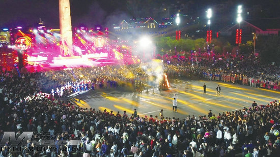 11月1日晚,萬人沙朗篝火晚會在北川新生廣場舉行。