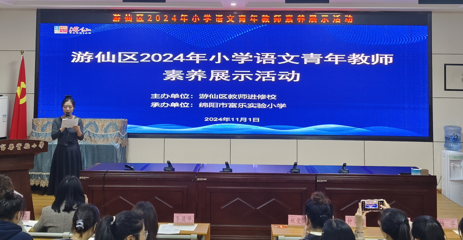 為了落實(shí)義務(wù)教育語文新課標(biāo)精神,立足新教材,建設(shè)好課堂,不斷提升教學(xué)教研水平。11月1日,游仙區(qū)2024年秋“同臺(tái)競(jìng)技展風(fēng)采 厚植素養(yǎng)促成長(zhǎng)”小學(xué)語文青年教師素養(yǎng)展評(píng)活動(dòng)在富樂實(shí)驗(yàn)小學(xué)舉行。游仙區(qū)教師進(jìn)修學(xué)校副校長(zhǎng)李筱華、游仙區(qū)教師進(jìn)修學(xué)校小學(xué)語文教研員姚愛萍、游仙區(qū)教師進(jìn)修學(xué)校教研員羅剛、游仙區(qū)五里路小學(xué)瑋永芳名師工作室主持人瑋永芳、游仙區(qū)語文學(xué)科工作室領(lǐng)銜人梁艷等擔(dān)任比賽評(píng)委。來自全區(qū)45名優(yōu)秀青年教師和近120名觀摩教師齊聚一堂,共享游仙小學(xué)語文青年教師素養(yǎng)的視聽盛宴。