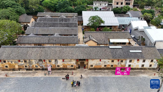 由江氏客家圍屋改建而成的長(zhǎng)守戲劇谷(11月9日攝,無(wú)人機(jī)照片)。