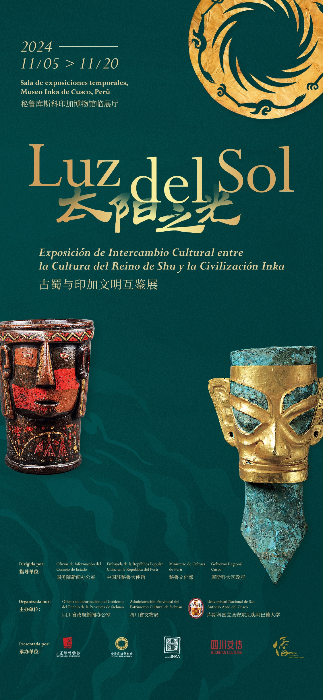 秘魯當(dāng)?shù)貢r(shí)間11月5日,“太陽(yáng)之光:古蜀與印加文明互鑒展”在秘魯印加博物館揭幕。來(lái)自三星堆博物館、成都金沙遺址博物館的16件(套)代表性文物復(fù)制品、3D打印藝術(shù)品以及印加博物館館藏的7件(套)精美器物共聚一堂展開(kāi)“對(duì)話”互鑒,開(kāi)啟古蜀文明與印加文明之間“和而不同”的精彩碰撞,備受當(dāng)?shù)孛癖姎g迎。