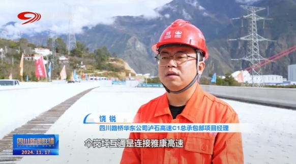 四川路橋華東公司瀘石高速C1總承包部項目經(jīng)理 饒銳:傘崗坪互通是連接雅康高速和瀘石高速的一個樞紐互通,整個項目施工難度相當大,目前,已達到90%的施工進度,預計在明年4月份左右建設完成。