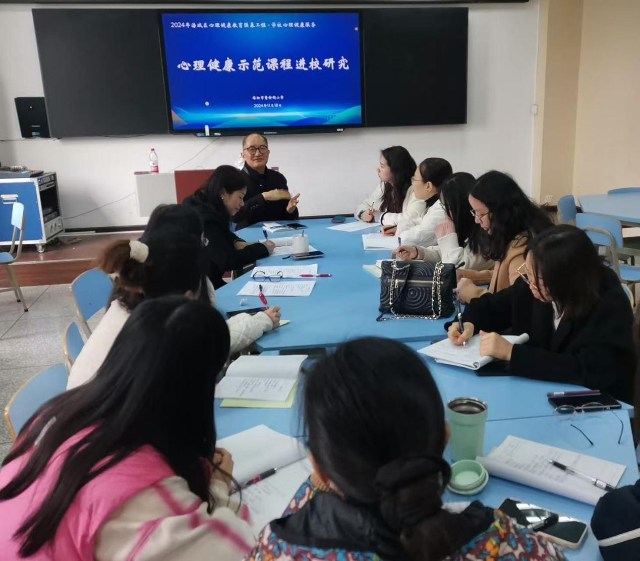 課后,張春老師與該校班主任團(tuán)隊進(jìn)行了深入的心理教研活動。他不僅分享了心理輔導(dǎo)課的先進(jìn)模式和經(jīng)驗,還就如何處理特殊學(xué)生以及與家長的有效溝通等問題,與班主任們進(jìn)行了熱烈的討論和交流。張老師的專業(yè)見解和寶貴建議,為該校班主任在今后的工作中提供了有力的支持和指導(dǎo)。此外,張春老師就校園心理健康文化建設(shè)與該校德育處趙露老師進(jìn)行了深入交流,提出了心理健康課要有層級感等建議,給該校提供了寶貴經(jīng)驗。