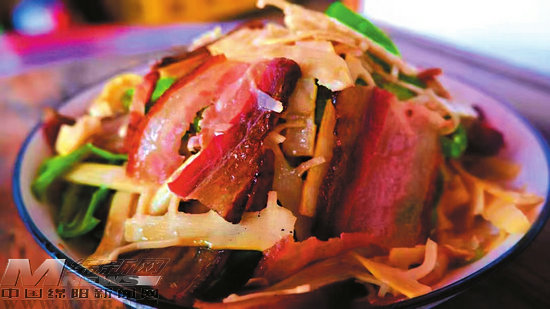 切盤(pán)的臘肉令人垂涎欲滴