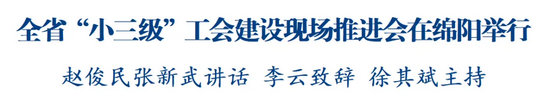 綿陽(yáng)新聞網(wǎng)訊 11月21日,全省“小三級(jí)”工會(huì)建設(shè)現(xiàn)場(chǎng)推進(jìn)會(huì)在綿陽(yáng)舉行,會(huì)議旨在進(jìn)一步增強(qiáng)做好“小三級(jí)”工會(huì)工作的政治自覺、思想自覺、行動(dòng)自覺,真正讓“小三級(jí)”工會(huì)建起來、轉(zhuǎn)起來、活起來、強(qiáng)起來。省委常委、省總工會(huì)主席趙俊民,全國(guó)總工會(huì)書記處書記、黨組成員張新武出席會(huì)議并講話;市委副書記、市長(zhǎng)李云出席會(huì)議并致辭;省總工會(huì)黨組書記、副主席徐其斌主持會(huì)議。