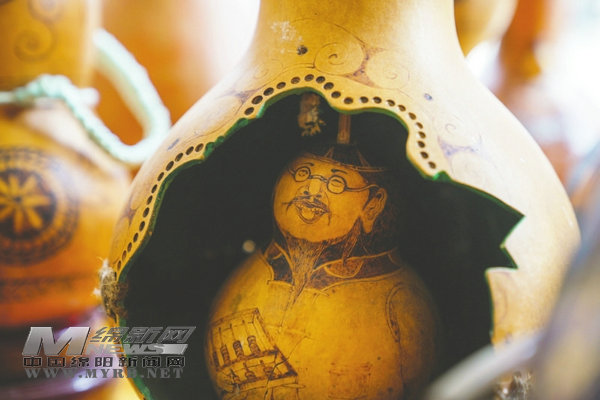 在綿陽市安州區(qū)河清鎮(zhèn),有一位被當(dāng)?shù)厝朔Q為“葫蘆哥”的農(nóng)民藝術(shù)家,他以烙鐵為筆,以葫蘆為紙,輕巧勾勒間,精致細(xì)膩的圖案便被烙燙在形態(tài)各異的葫蘆上。