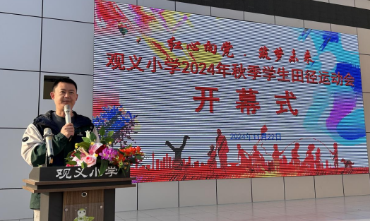 本屆運動會是對該校體育工作的檢閱。隆重的入場儀式,伴隨著《運動員進(jìn)行曲》,各班運動員組成的方陣邁著整齊的步伐,雄赳赳、氣昂昂地經(jīng)過主席臺,接受該校領(lǐng)導(dǎo)的檢閱。在莊嚴(yán)的升旗儀式,裁判員、運動員宣誓后,舉行了第九套廣播操展示,全校同學(xué)精神抖擻、動作規(guī)范,充分展示了觀義小學(xué)朝氣蓬勃的精神面貌。