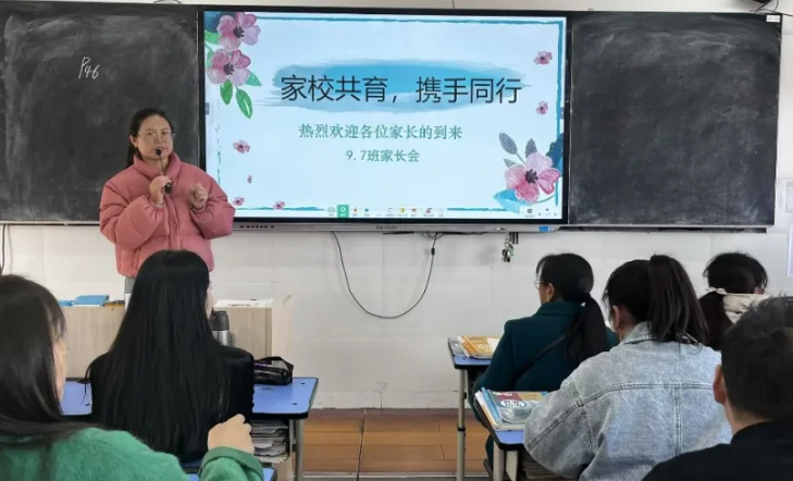 講座后進行各班集中交流,班主任首先仔細與家長分享、分析了孩子們本次半期考試的成績,從整體到個體、從縣級到校級、從班級到個人,班主任老師逐一逐條進行闡釋、分析。此外,各班班主任還立足班情,介紹了本班的班級情況,引導家長們用正向態(tài)度看待孩子的學習,及時關(guān)注孩子的身心變化,助力孩子的健康成長。其次也針對德育常規(guī)、日常教學以及安全教育等方面向家長們進行全面的反饋和溝通,并給予了家長一些具體的有針對性的家庭教育建議。同時班主任還邀請師生代表發(fā)言,分享有效的學習方法和教育心得,鼓勵家長與學生加強溝通與交流。各班任課老師隨后也結(jié)合學生課堂表現(xiàn)和作業(yè)情況,向家長具體分析孩子們的學習情況,同時也從學習策略與習慣培養(yǎng)向家長們提出專業(yè)、實用的建議。