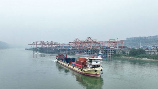 貨輪駛離宜賓港。羅順 攝