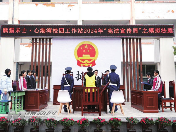 憲法精神走進校園。涪城區(qū)檢察院走進楊家中學開展了一場別開生面的校園模擬法庭活動,將真實法庭“搬”進校園,“沉浸式”體驗司法審判流程。“全體起立!請審判長、審判員入庭……”隨著“書記員”青澀而堅定的聲音響起,模擬法庭正式開庭。本次模擬法庭宣判的是一起校園搶劫案,13名同學穿上制服,化身為法官、檢察官、律師、被告人等角色,通過法庭調查、法庭辯論、法庭宣判等環(huán)節(jié),切身體驗法律的公正與嚴明。