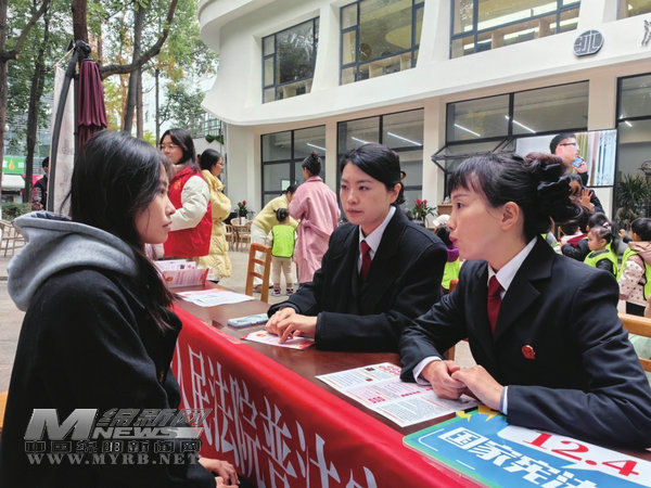 同法官一起“讀法”。在“12·4”國家憲法日普法宣傳及閱讀分享活動現(xiàn)場,綿陽教工幼兒園的老師帶著一群小朋友來到位于人民公園的市圖書館昭烈分館樓下的普法宣傳點,市中級人民法院的法官們向小朋友介紹憲法日的相關情況。在讀書分享環(huán)節(jié),法官們向讀者們推薦《想點大事》《法官說民法典》等書籍,結合自己的閱讀感悟、法院工作經歷、生活中《民法典》等法律法規(guī)密切相關的事例與案例,與大家進行分享交流。