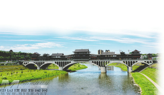 天藍(lán)水清(三臺(tái)凱江廊橋)(侯曉斌 攝)