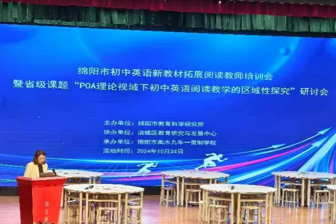 近日,綿陽市高水九年一貫制學(xué)校(城北七中)舉行了以“研究新教材 落實新目標(biāo)”為主題的綿陽市初中英語新教材拓展閱讀教師培訓(xùn)會暨省級課題“POA理論視域下初中英語閱讀教學(xué)的區(qū)域性探究”研討會。綿陽市教育科學(xué)研究所王能釵老師,綿陽市涪城區(qū)教育研究與發(fā)展中心教研員陳紅秀老師,深圳市教育科學(xué)研究院的李睿老師,南充市教育科學(xué)研究所楊娟所長,綿陽市高水九年一貫制學(xué)校校長聶孟君女士,深圳市龍華區(qū)觀瀾實驗學(xué)校謝樑品老師,綿陽市東辰學(xué)校周慶老師以及綿陽市實驗中學(xué)陳利軍老師參加活動。