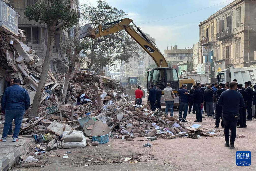 12月10日,救援人員在埃及首都開羅的樓房倒塌事故現(xiàn)場開展搜救。