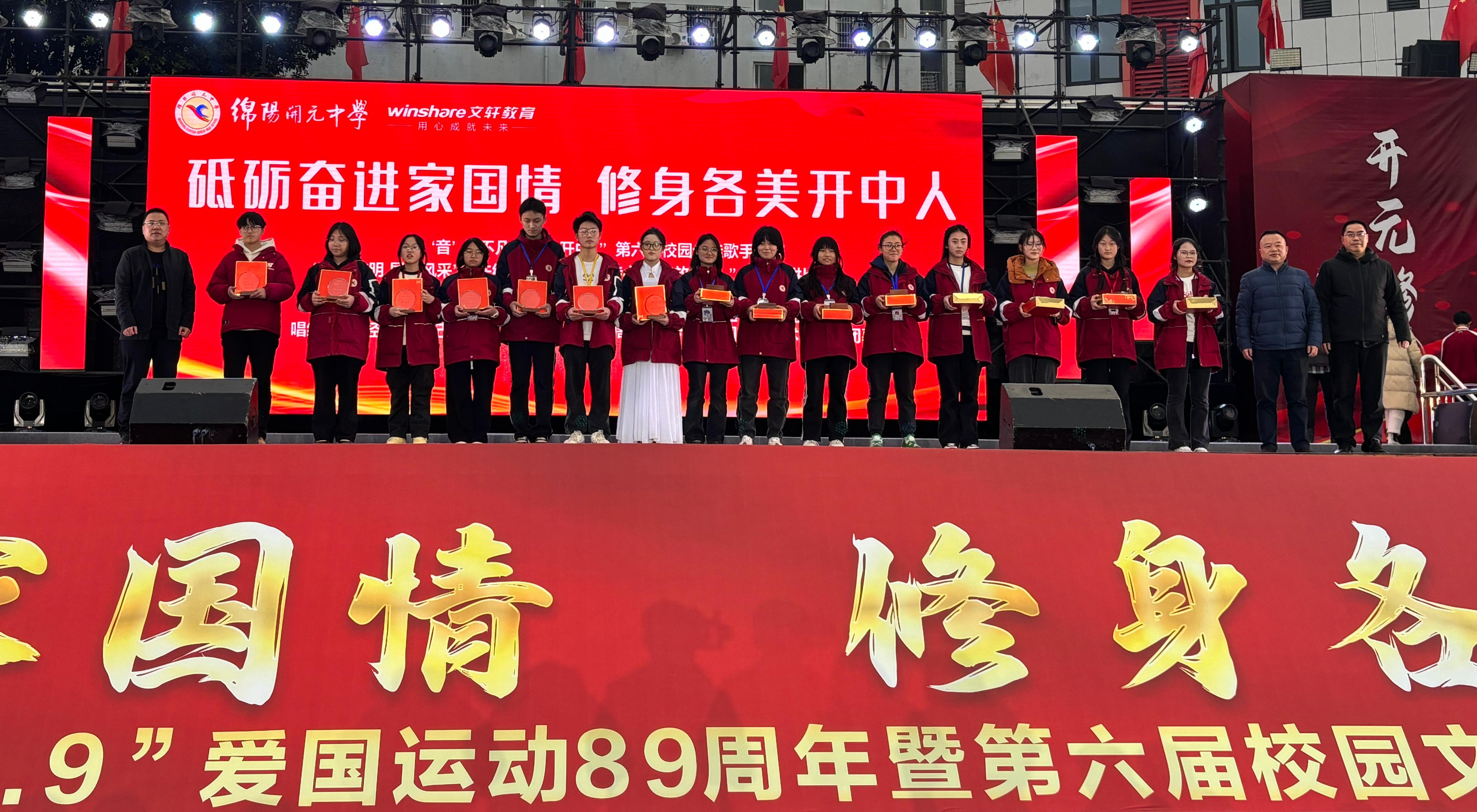 2024年12月5日,綿陽(yáng)市開(kāi)元中學(xué)在學(xué)校運(yùn)動(dòng)場(chǎng)舉行了以“砥礪奮進(jìn)家國(guó)情,修身各美開(kāi)中人”為主題的紀(jì)念“12·9”運(yùn)動(dòng)89周年暨第六屆校園文化藝術(shù)科技節(jié)閉幕文藝匯演和晚會(huì)。該校全體師生觀看了演出,團(tuán)區(qū)委書(shū)記王耀,區(qū)委教育工委委員、區(qū)教體局黨組成員、副局長(zhǎng)顧曉東,區(qū)教體局團(tuán)委書(shū)記陳綺宇等領(lǐng)導(dǎo)出席本次活動(dòng)。