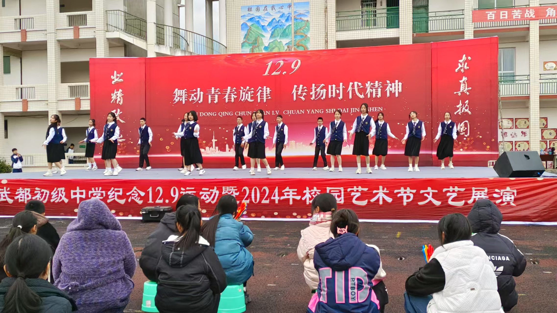 12月10日,江油市武都初級中學(xué)舉行了以“舞動青春旋律 傳揚(yáng)時代精神”為主題的紀(jì)念“12.9”運(yùn)動暨2024年校園藝術(shù)節(jié)活動,本次活動旨在緬懷歷史,傳承先輩精神,展現(xiàn)當(dāng)代初中生的風(fēng)采。