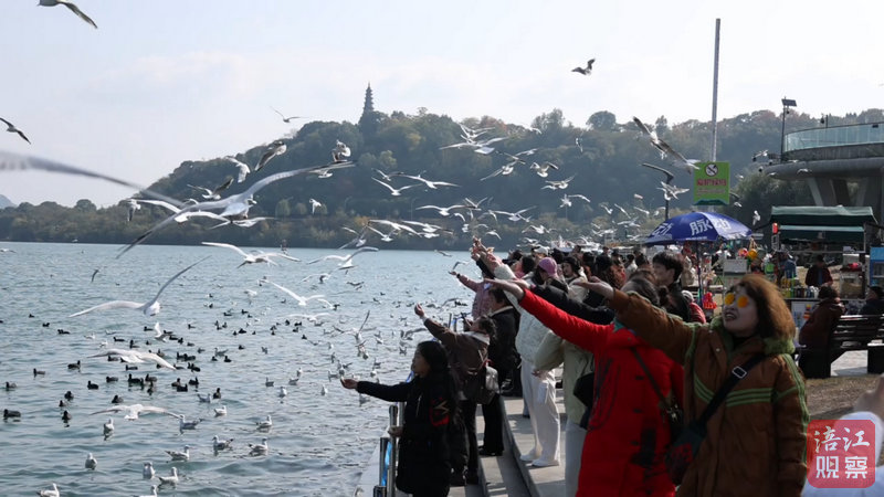 然而,“和諧”之下,依然存在“煞風(fēng)景”的行為。12月10日14時許,記者在三江半島景區(qū)看到,不少市民紛紛將手中的面包掰成小塊拋至空中,引來紅嘴鷗搶食,還有部分市民試圖與紅嘴鷗“親密接觸”。