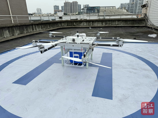 在工作人員完成準(zhǔn)備工作并按下啟動(dòng)鍵后,裝載著血液的無人機(jī)正式起航,向著綿陽市中心醫(yī)院飛去。不到5分鐘,負(fù)載著“救命血”的無人機(jī)順利抵達(dá)醫(yī)院。