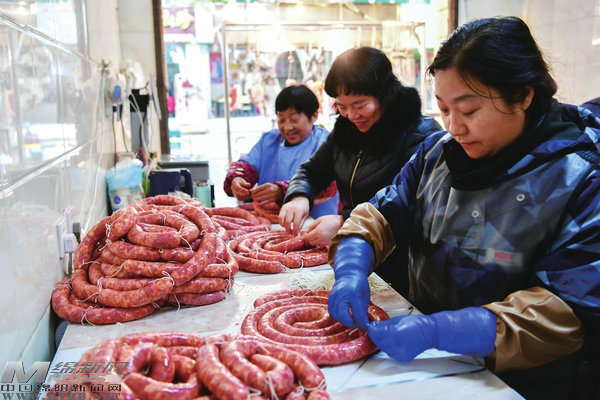 裝臘腸、腌臘肉……隆冬時節(jié),正是晾曬香腸、臘肉的好時機。近日,記者在綿陽城區(qū)農(nóng)貿(mào)市場看到,許多臘味制品店開始忙碌起來,店內(nèi)店外掛起了一排排讓人垂涎的臘制品。建設街農(nóng)貿(mào)市場臘味制品區(qū),人潮涌動,店鋪忙著為市民灌制香腸、儲備臘制品,忙得不亦樂乎。